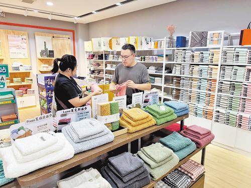 “近兩年,一條普通毛巾的利潤從原來最高時的1元降到了不足2角。與其在普通市場上和別人一起‘卷’,不如另辟新賽道。”田海濤說,目前,永亮公司生產的產品種類從原來的300多種減少到了約150種。產品細節做加法,企業經營做減法。以前企業是做寬度,什麼產品都做,現在是做深度,把某一個系列的產品做精做好。