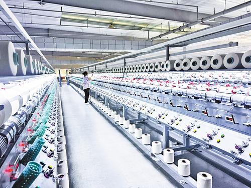 9月16日,聖翔染廠生產車間,工人進行紗線鬆筒。本報記者 常方圓攝