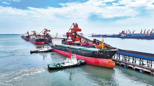 不遠處的礦石碼頭上,數十米高的大型卸船機蓄勢以待,准備將船艙內來自巴西的礦石卸下,運往腹地的一家鋼廠。