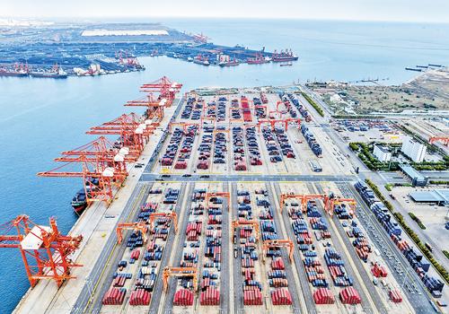 近日,唐山港京唐港區,集裝箱碼頭堆場上放滿了待運貨物。 本報記者趙杰攝