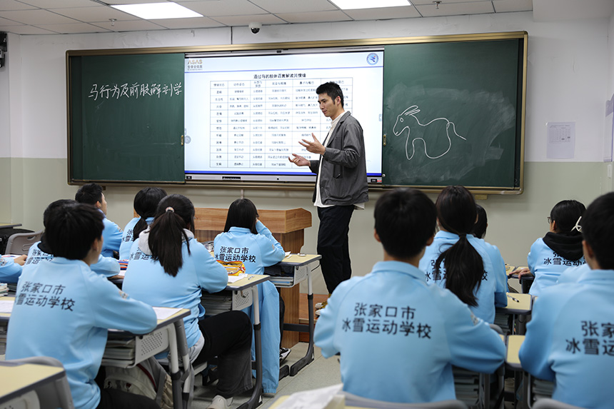 老師正在為學生們講述馬術相關知識。張家口市足球和冰雪運動學校供圖