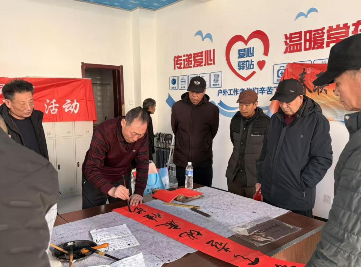 活動特邀縣內書法協會老師在工會驛站為群眾書寫春聯、贈送“福”字,老師們集體開筆,揮毫潑墨、筆走龍蛇,一副副寓意吉祥、飽含深情的春聯,一張張喜慶紅火、筆力遒勁的“福”字接連誕生,聞訊而來的群眾們在現場欣賞書法創作的魅力,之后大家紛紛領到心儀的春聯和“福”字。