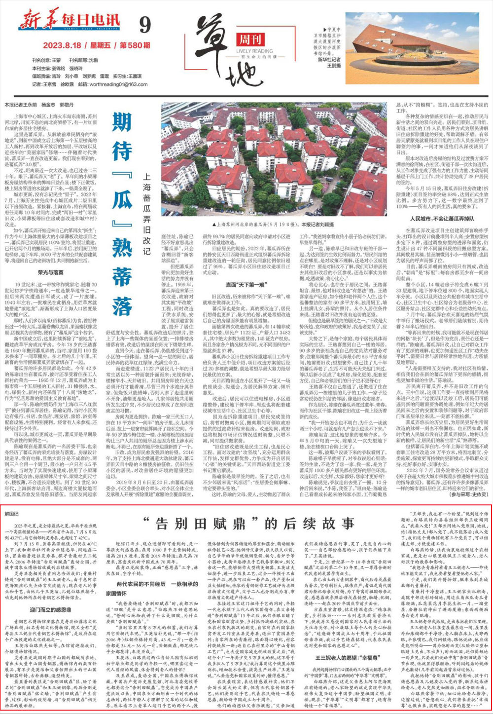 到7月15日,虽非高温极值,但仍在40°C上下。我和新华社河北分社陈忠华、闫起磊二位,冒着酷暑赶往灵寿县,探寻青廉村王三妮老人2006年铸造“告别田赋鼎”轰动全国,并被中国农业博物馆收藏的后续故事。