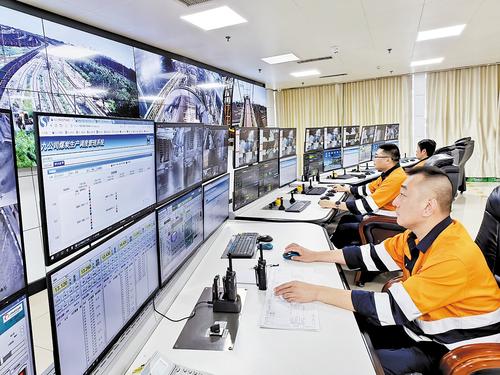 8月7日,秦港股份调度指挥中心集控中心,工作人员查看自动翻车机作业情况。 本报记者 张 辉摄
