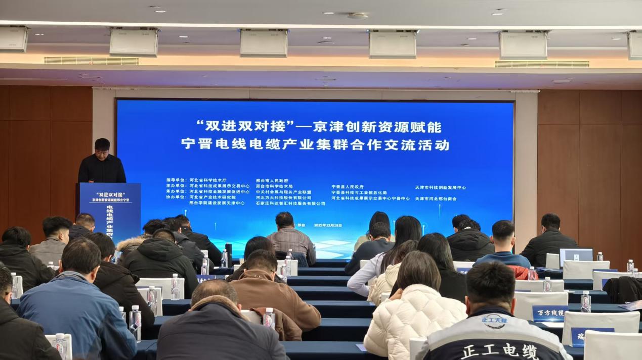 12月18日,“双进双对接——京津创新资源赋能宁晋电线电缆产业集群合作交流活动”在河北宁晋县举办。本次活动紧扣“双地联动、双链对接”核心路径,汇聚京津冀三地技术专家、金融精英及当地企业代表共100余人,不仅是一场技术、资本、政策的精准对接,更是创新生态与产业根基的深度融合,为宁晋电线电缆产业提档升级注入强劲动能。