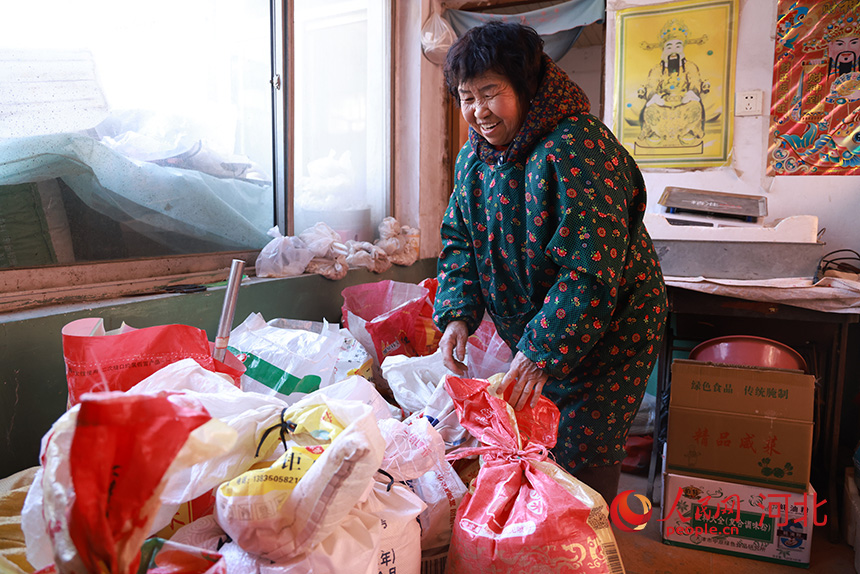 “上次大集卖了500多块。”75岁的陈丽娟对记者说,眼睛笑成一条缝,“快过年了,再啥样的人也得过年,儿女都回来了,来个亲戚啥的,得多准备点。”她坐在自家摊位后,面前的蛇皮袋里,小米面、棒子面码得整整齐齐。她手里攥着一沓零钱,边数边招呼摊前排队买货的客人。