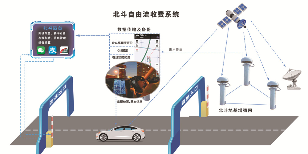 在交通强国战略指引下,智能科技公司深入贯彻落实北斗系统在交通运输领域的创新应用,成功打造北斗自由流收费系统。该系统依托北斗卫星高精度定位与路径识别技术,实现北斗用户车辆快速驶入驶出收费站,通过精确还原车辆行驶轨迹完成通行费在线实时计扣,大大缩短收费站单次通行时间,大幅提升通行效率。在此基础上,北斗自由流收费系统进一步与“手机+”无卡便捷通行模式实现深度融合,形成了更贴合用户需求的智慧收费方案。